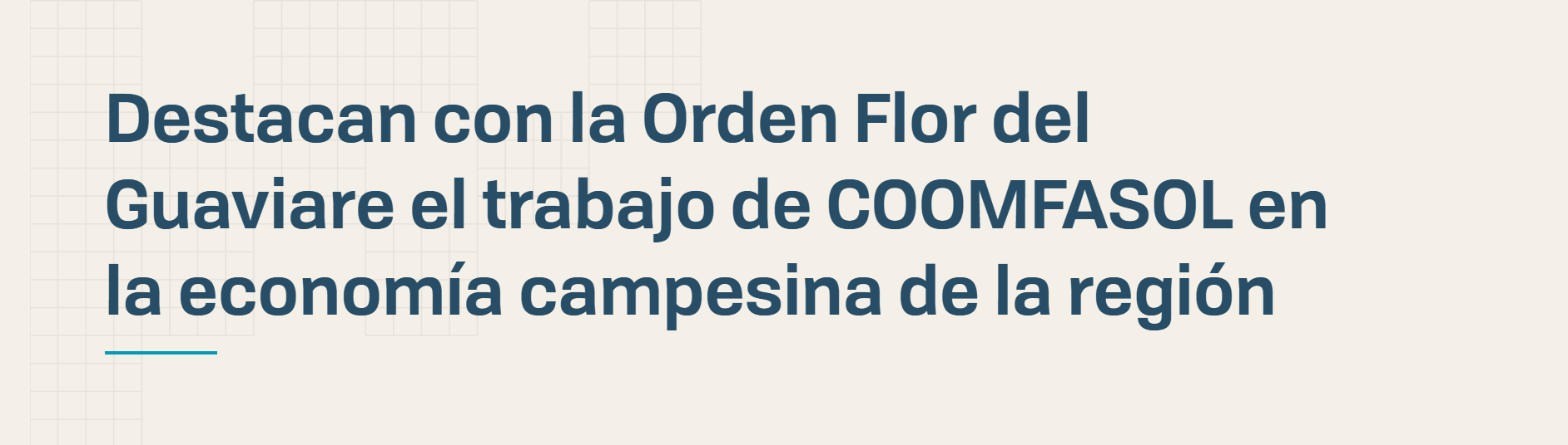 La Alcaldía de San José del Guaviare reconoció y exaltó la labor de la cooperativa COOMFASOL con la con la orden Flor del Guaviare, en la categoría de “Gran servidor”. Esta condecoración, recibida por Flor Alba Quevedo como representante de la cooperativa, destaca su labor en la reactivación económica y el apoyo a los campesinos productores. El reconocimiento se realizó en el marco de la audiencia pública de rendición de cuentas del gobierno municipal 2020-2023.