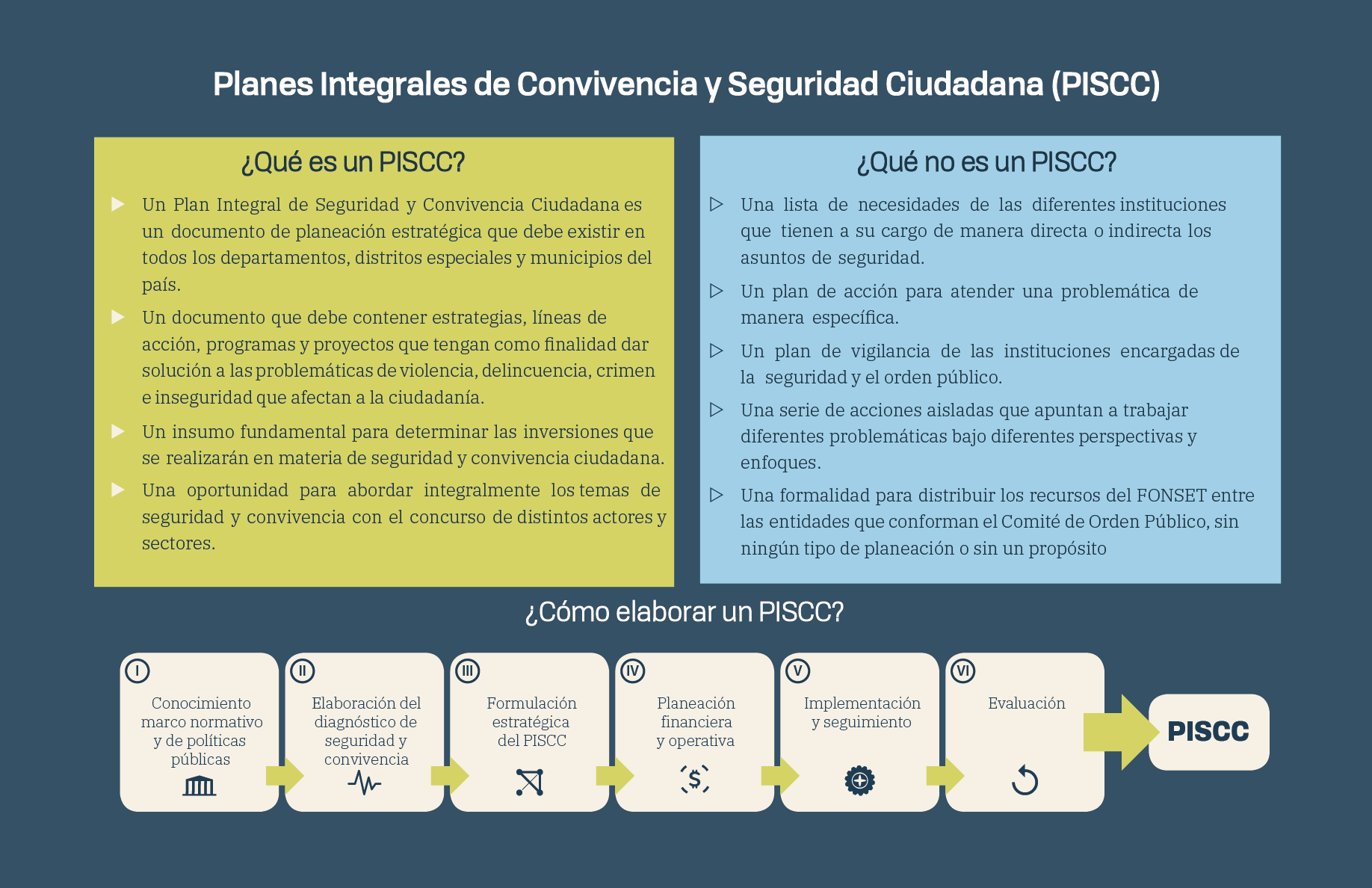 Guía metodológica que brinda insumos y orientaciones técnicas en los componentes propios de un Plan Integral de Seguridad y Convivencia Ciudadana, y parte de una exposición general del marco de referencia normativo correspondiente.