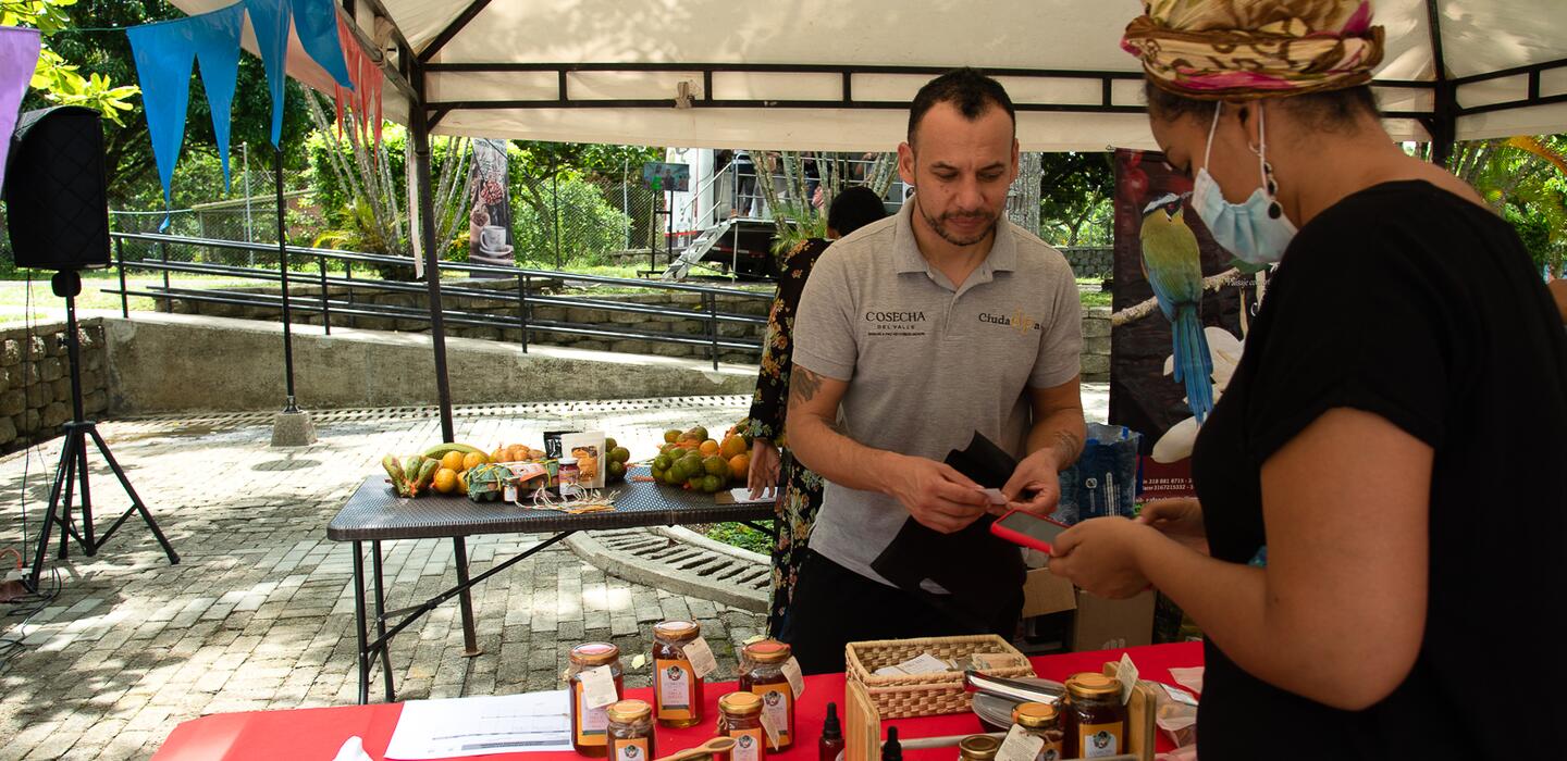 El primer nodo está integrado por la cooperativa Ciudad Paz, un colectivo con 11 integrantes, entre reincorporados, sus familiares y personas de la comunidad. Su objetivo es generar procesos de fortalecimiento y apoyo a las iniciativas de los firmantes del Acuerdo de Paz, especialmente desde el encadenamiento productivo y la comercialización en la ciudad. Ya sea en mercados campesinos, locales de venta o redes sociales, Ciudad Paz lleva sus marcas a todo el país para mostrar los frutos que el trabajo colaborativo puede dar.
